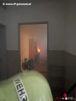 Auch die Alarmzentrale blieb während des Einsatzes besetzt. Die Lageerkundung durch den Einsatzleiter ergab eine auffallend starke Verrauchung am Gang des 1. Obergeschoßes. Der im Innenangriff vorgehende Atemschutztrupp von TANK 2 Gmünd meldete zusätzlich einen Brandübergriff auf Zwischenwände und Zimmerdecken.
