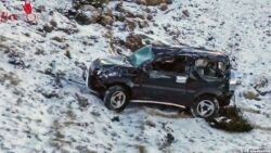Ein Fahrzeug kam auf einer Eisplatte ins rutschen und stürzte anschließend rund 50 m über einen steilen Abhang hinunter. Die alarmierten Einsatzkräfte des Roten Kreuzes und der Bergrettung versorgten die verletzten Personen. Ebenfalls musste der Rettungshubschrauber C12 angefordert werden.