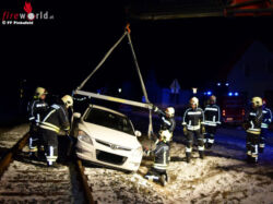 PINKAFELD (BGLD): Am Abend des 06.01.2017 wurde die Feuerwehr Pinkafeld mittels Rufempfänger zu einer Fahrzeugbergung (PKW auf Bahngleis) in die E- Werkstraße alarmiert. Ein Pkw war aus ungeklärter Ursache von der Fahrbahn abgekommen und auf den angrenzenden Bahngleisen zum Stehen gekommen.