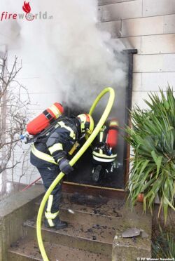 WIENER NEUDORF (NÖ): Am 8. Jänner 2017 wurde die Freiwillige Feuerwehr Wiener Neudorf um 11.46 Uhr mit Sirene zu einem Wohnhausbrand in der Mitterfeldgasse alarmiert. Die Einsatzadresse liegt im dicht bebauten Ortskern in einer Wohnsiedlung.