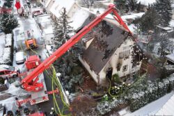 Die Besitzerin des Wohnhauses und deren Pflegerin konnten sich noch selbst in Sicherheit bringen, sie wurden aber verletzt und zur weiteren Untersuchung ins Krankenhaus gebracht. Im Innenangriff konnte der Brand soweit bekämpft werden dass die zweite Doppelhaushälfte geschützt werden konnte. Strom und Gas mussten vom Energieversorger bzw. der Feuerwehr abgedreht werden.