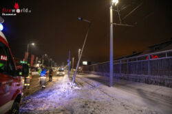 Ein Auto krachte auf der Kürnbergstraße in Pasching gegen eine Straßenlaterne, welche in die Oberleitung der Straßenbahn stürzte. Es kam zu einem Erdschluss, die Oberleitung ist daraufhin gerissen. Die Feuerwehr sicherte die Unfallstelle ab. Techniker der Linz AG – Strom begannen sofort mit der Sicherung der Unfallstelle sowie der Wiederherstellung der betroffenen Leitung. Die Straßenlaterne wurde stromlos gemacht und von der Feuerwehr entfernt.