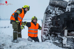 ALKOVEN (OÖ): Per Personenrufempfänger wurden die Mitglieder der Freiw. Feuerwehr Alkoven am 8. Jänner 2017 um 15.51 Uhr zu einem Bergungseinsatz auf der B 129 zwischen Straß und Emling alarmiert. Vor Ort erwartete die Feuerwehr ein auf dem Dach liegender Pkw.