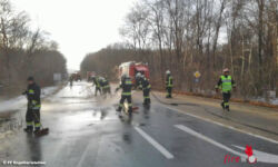 Die alarmierten Feuerwehren Stopfenreuth und Engelhartstetten führten die Absicherung der Einsatzstelle und die Fahrzeugbergungen durch. In weiterer Folge wurden die Feuerwehren Lassee, Marchegg und Schönfeld mit Tanklöschfahrzeugen nachalarmiert, um die auf ca. 200m verschmutzte Fahrbahn mit Hochdruckwasserstrahl zu reinigen.