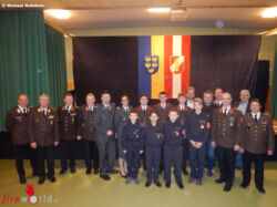 Im Anschluss überreichte er den Mitgliedern der Jugendfeuerwehr die Fertigkeitsabzeichen Technik, bzw. Technik-Spiel. Da sie nunmehr 15 Jahre alt sind, wurden die Jungfeuerwehrmänner Florian Riegler und Florian Ringhofer in den Aktiv-Stand überstellt und die beiden legten die Gelöbnisformel ab. Probefeuerwehrmann Lukas Bauer wurde zum Feuerwehrmann befördert.