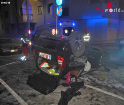Wien: Pkw überschlägt sich nach Unfall im 22. Bezirk → Tür- und Radverlust