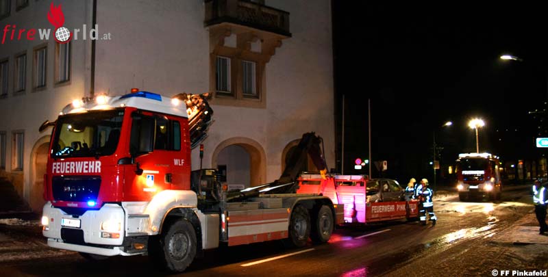 PINKAFELD (BGLD): Am Abend des 13. Jänner 2017 (während der 145. Hauptdienstbesprechung) wurde die Freiwillige Feuerwehr Pinkafeld mittels Rufempfänger zu einem Verkehrsunfall am Rathausplatz alarmiert.