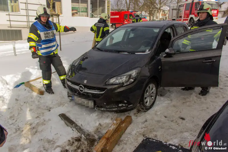 Zur zweiten Fahrzeugbergung wurde die Feuerwehr Ohlsdorf am Sonntag, 15. Jänner 2017, um 13:03 Uhr in die Maxwaldstraße alarmiert. Ein PKW kam auf einem Parkplatz aufgrund der Schneefahrbahn ins Rutschen und blieb mit dem Fahrzeug in einer Regenrinne hängen.