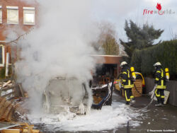 SCHIFFDORF (DEUTSCHLAND): Die Feuerwehr Schiffdorf ist am Sonntag, den 15.01.2017, um 09:29 Uhr zu einem Fahrzeugbrand in der Straße Große Litt in Schiffdorf-Friedheim alarmiert worden. Auf Grund glatter Straßen galt bei der Anfahrt äußerste Vorsicht.