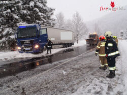 Dabei blieb der Lkw am Fahrbahnrand hängen. Beim Eintreffen der FF Lauffen wurde von HBI Florian Laimer eine Nachalarmierung der FF Bad Ischl veranlasst, um mittels der Einbauseilwinde des Schweren Rüstfahrzeuges die Bergung des Fahrzeuges vorzunehmen.