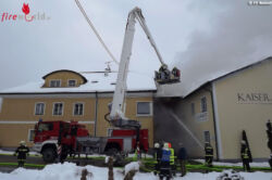 ENZENKIRCHEN (OÖ): Zu einem Brand in einer Textilfabrik wurden am Montag, 16. Jänner 2017, um 14:34 Uhr die Feuerwehren Enzenkirchen und Matzing ins Ortszentrum von Enzenkirchen gerufen. Für Einsatzleiter HBI Mair Josef war die Lage nach dem Eintreffen am Einsatzort sofort klar und ließ kurzerhand die Feuerwehren der Alarmstufe 3 nachalarmieren. Insgesamt standen daher bereits kurze Zeit später 12 Feuerwehren mit etwa 180 Mann im Einsatz.