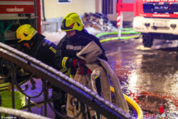Eine Nachbarin stellte Rauch aus dem Firmengebäude aufsteigen, welche sodann rasch die Besitzer alarmierte. Diese zögerten nicht und riefen nach kurzer Erkundung sofort die Feuerwehr. Im Bereich der Schneiderei ist ein Brand ausgebrochen und hatte bereits auf den Dachstuhl übergegriffen. Durch den Einsatz der Teleskopmastbühne der Feuerwehr Andorf war ein Löschangriff auch von außen über das Dach möglich. Glücklicherweise konnten sich alle Personen noch aus dem Gebäude retten.