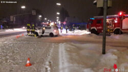VÖCKLABRUCK (OÖ): Die Freiw. Feuerwehr Vöcklabruck wurde am 17. Jänner 2017 zu einem Verkehrsunfall auf die B1/Esthoferkreuzung gerufen. Auf schneeglatter Fahrbahn waren zwei Pkw zusammengestoßen.