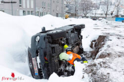 Dort hat er weitere Fahrverbotstafeln übersehen, ist durch die Absperrung auf die Baustelle bei der Jahnturnhalle eingefahren. Als er nur noch Bagger und schneebedeckte Erdhügel sah, wollte er quer über die Baustelle wieder umdrehen. Beim rückwärts fahren übersah er erneut ein Hindernis und fuhr in eine Baugrube. Dabei kippte der Wagen auf die Beifahrerseite und blieb im Erdloch liegen.