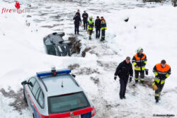 Da keine Flüssigkeiten wie Benzin oder Öl ausgeflossen waren, rückte die Feuerwehr Feldkirch wieder ab … Das Auto wurde später vom Abschleppdienst mit einem Kran herausgehoben. Der Pensionist blieb unverletzt, das Ganze war ihm sehr unangenehm.