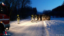 Ein Kleintransporter kam auf der glatten Fahrbahn von der Straße ab, fuhr auf eine Leitschiene und kippte schlussendlich zur Seite. Nachdem ein Brandschutz aufgebaut und die Unfallstelle abgesichert war, stellten die Kameraden der Feuerwehr Thörl das beschädigte Fahrzeug mittels Seilwinde wieder auf die Räder und schleppten es anschließend zu einem naheliegenden Parkplatz.