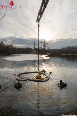 KREMS AN DER DONAU (NÖ): Am Montag, dem 16. Jänner 2017 wurde ein Pkw mit einem verstorbenen Insassen aus einem Teich bei Hollenburg geborgen. Dazu waren Kräfte der Exekutive („EKO Cobra“), des NÖ Tauchdienstes („Tauchgruppe Nord“) und der Feuerwehr Krems/Donau eng koordiniert gemeinsam im Einsatz.