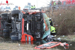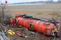 Nö: Sattelschlepper mit Ölschlamm stürzt über Böschung → Personenrettung und Stoffaustritt
