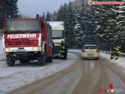 MARIAZELL (STMK): Auf Grund von Schneeglätte und nicht angelegten Schneeketten ist am Dienstag, 17. Jänner 2017. ein rumänischer Lkw am Ortsende von Gollrad in Richtung Passhöhe hängen geblieben und blockierte auf einer unübersichtlichen Stelle die rechte Fahrspur der B20. Von der ortszuständigen Feuerwehr Gollrad wurde um 11:00 Uhr das SRF der Feuerwehr Mariazell mit drei Einsatzkräften zur Unterstützung angefordert.
