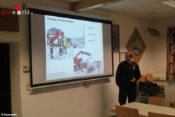 Zunächst stellte V Ing. Manfred Ploiner (im Brotberuf Eisenbahningenieur bei der NÖVOG) die möglichen Gefahren vor, die von Bahnanlagen ausgehen können und welche Einsatzszenarien den Einsatzleiter vor Ort erwarten könnten. Anschließend erläuterte EV Engelbert Eckenfellner (beruflich in leitender Funktion beim Betrieb der ÖBB) die Aufgaben und Möglichkeiten des ÖBB-Einsatzleiters und die bahninternen Abläufe bei Zwischenfällen.