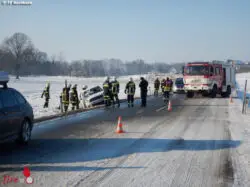 Aus bislang unbekannter Ursache kam es auf diesem Teilstück zu einem Zusammenstoß zweier Autos, wobei beide Fahrzeuge im Straßengraben landeten und ein Pkw sich überschlug und auf dem Dach liegen blieb. Die Insassen konnten sich selbst aus dem Fahrzeug befreien. Zwei Beteiligte wurden von der Rettung mit Verletzungen unbestimmten Grades zu weiteren Untersuchungen ins Krankenhaus gebracht. Durch die Feuerwehr wurde die Fahrzeugbergung durchgeführt und die beiden beschädigten Pkw auf einen gesicherten Abstellplatz gestellt.