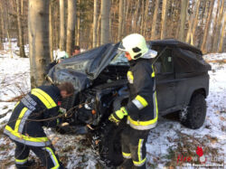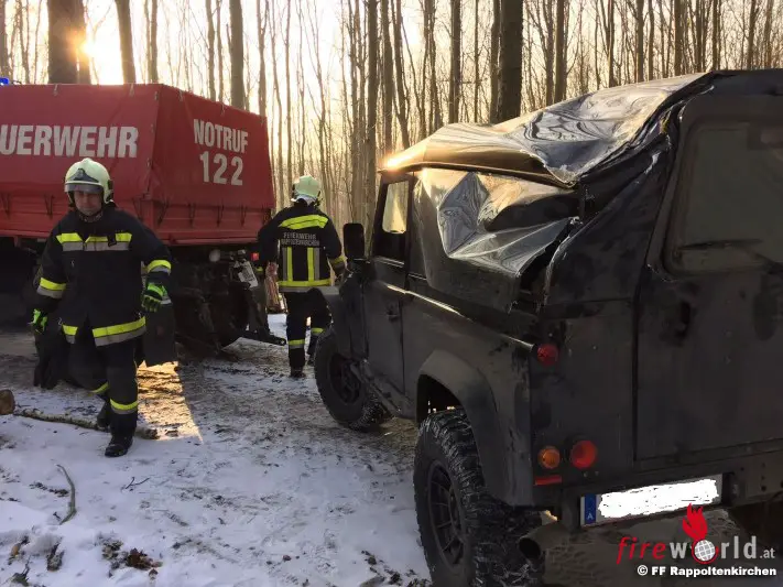 RAPPOLTENKIRCHEN (NÖ): Bereits um 5. Mal innerhalb von drei Wochen wurde die Mannschaft der FF Rappoltenkirchen zu einer Fahrzeugbergung gerufen. Ein Land Rover kam in einer Kurve von der Fahrbahn ab, überschlug sich seitlich und kam anschließend wieder auf den Rädern in einem Waldstück zum Stehen.