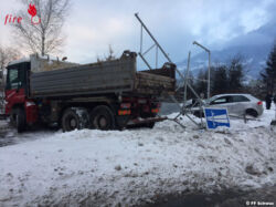 Weil die Meldung unklar war, wurde neben dem Rettungsdienst auch die Feuerwehr Schwaz mitalarmiert. Die Feuerwehr Schwaz unterstützte den Rettungsdienst bei der Verletztenversorgung und führte im Anschluss die Aufräumarbeiten an der Unfallstelle durch. Unter anderem mussten mittels Trennschleifer die Verkehrstafeln entfernt werden sowie der LKW mittels Seilwinde zurück gezogen werden.