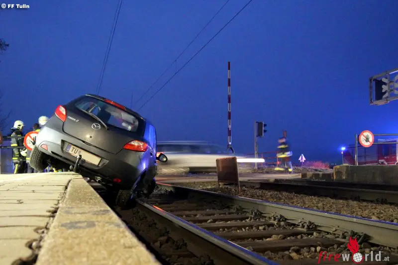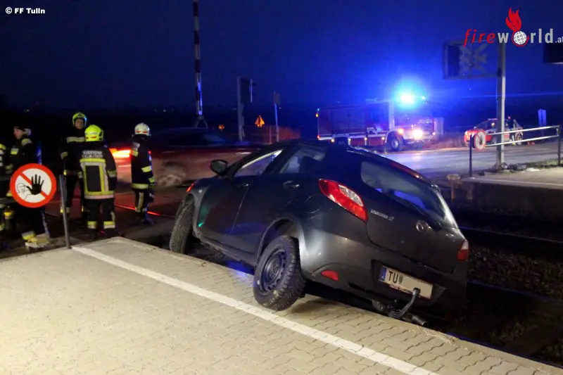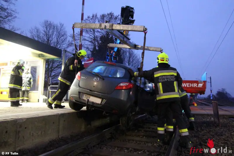 LANGENLEBARN (NÖ): Am 25.01.2017 wurde die Feuerwehr Tulln um 06:38 Uhr von der Freiw. Feuerwehr Langenlebarn zur Unterstützung bei einer Fahrzeugbergung im Gleisbereich der Franz-Josef-Bahn angefordert.