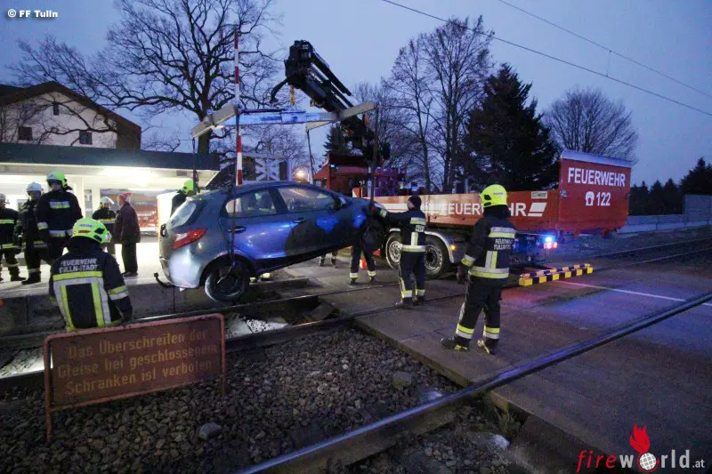 Nachdem die Oberleitung abgeschaltet und geerdet wurde, konnte der Kleinwagen mit dem Ladekran des Wechseladefahrzeuges der FF Tulln schonend von den Gleisen gehoben und auf der Fahrbahn der Eisenbahnkreuzung abgesetzt werden. Da der Pkw unbeschadet blieb und ein Alkotest beim Lenker durch die Exekutive negativ war, konnte der Lenker seine Fahrt fortsetzen.