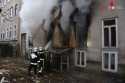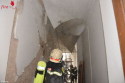 Das Gebäude ist aus aktueller Sicht nicht einsturzgefährdet, die Brandwohnung wird auf statische Schäden untersucht.