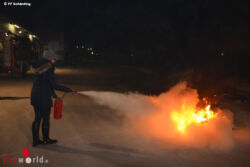 Neben einer kurzen Theorieeinweisung ging es in die Praxis. Jede Person konnte selbst Hand anlegen und einen Brand unter gesicherten Bedingungen mit fachkundiger Hilfe löschen. „Wir wollen den Leuten die Scheu nehmen, einen Feuerlöscher zu bedienen, andererseits aber auch die Grenze aufzeigen, wo das eigene Leben gefährdet ist und man sich lieber in Sicherheit bringt,“ so Markus Furtner von der FF Schärding, der die Ausbildung gestaltet hat.