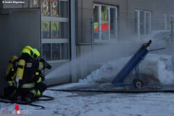 FOHNSDORF (STMK): Zu einem nicht alltäglichen, dafür umso heikleren Einsatz, rückten am Donnerstagvormittag, 26. Jänner 2017, die Feuerwehren aus Fohnsdorf und Judenburg aus. Gegen 09:00 Uhr kam es am Gelände einer Firma in Fohnsdorf zu einem Ventilbrand einer Acetylengasflasche.
