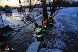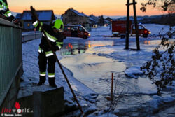 Während sich unterhalb der Brücke des Ingeringer Werkskanals dass Eis aufstaute, trat der Kanal über die Ufer. "Gerade noch rechtzeitig konnte die Feuerwehr Knittelfeld, die mit 15 Mann im Einsatz stand, die Verklausung unterhalb der Brücke lösen bevor die Wassermassen in den Keller eines in der Nähe gelegenen Einfamilienhauses eindringen konnten", schildert Einsatzleiter Brandmeister David Prettner.
