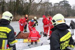 Ein Eisläufer (57) erlitt bei einem Sturz auf das Eis eine schwere Oberschenkelverletzung. Nach der Erstversorgung durch den eingetroffenen Notarzt, wurde der Patient mit Hilfe einer Schaufeltrage vom Eis aufgenommen und auf einer Vakuummatratze abgesetzt. Von den Kräften der Freiwilligen Feuerwehr Laxenburg wurde der Verletzte mittels Korbschleiftrage über das Eis zum Rettungswagen getragen und zum weiteren Transport übergeben.