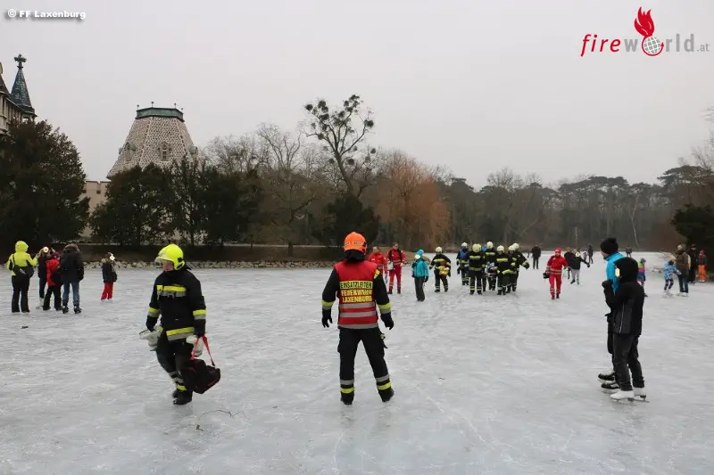 Ein Eisläufer (57) erlitt bei einem Sturz auf das Eis eine schwere Oberschenkelverletzung. Nach der Erstversorgung durch den eingetroffenen Notarzt, wurde der Patient mit Hilfe einer Schaufeltrage vom Eis aufgenommen und auf einer Vakuummatratze abgesetzt. Von den Kräften der Freiwilligen Feuerwehr Laxenburg wurde der Verletzte mittels Korbschleiftrage über das Eis zum Rettungswagen getragen und zum weiteren Transport übergeben.