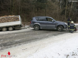 OBERWART (BGLD): Am Dienstag, dem 31.01.2017, wurde die Feuerwehr Oberwart um 11:42 Uhr zu einer Fahrzeugbergung auf dem Güterweg richtung Buchschachen alamiert. Am Einsatzort angekommen stellte sich heraus, dass ein Pkw mit einem vollgeladenen Anhänger in den Graben gerutscht war.