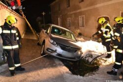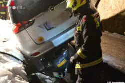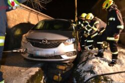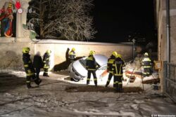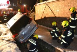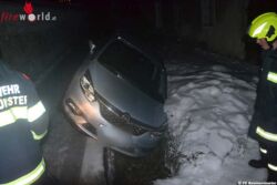 KREMSMÜNSTER (OÖ): Der vierte Einsatz für den 31. Jänner 2017 war eine Fahrzeugbergung am Burgfried. Ein Pkw-Lenker fuhr mit seinem Fahrzeug am Gunterweg Richtung Burgfried. Dabei rutschte das Fahrzeug aufgrund der eisigen Fahrbahn in den angrenzenden Bach.