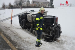 Oö: Umgestürzte Sattelzugmaschine in Schardenberg → Lenker eingeschlossen