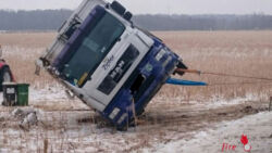 HAIDERSHOFEN (NÖ): Am 31. Jännner 2017 wurden die Feuerwehren Haidershofen und Vestenthal um 14:02 Uhr zu einer Lkw-Bergung alarmiert. Bei winterlichen Fahrbahnverhältnisse kam der Lastwagen von der Straße ab und kippte in ein Feld.