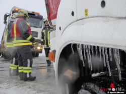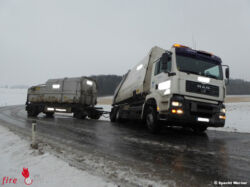 Da der Lkw-Lenker keine Schneeketten montiert hatte, rutschte das Fahrzeug beim Anfahren aus der Senke retour in den Straßengraben und drohte umzustürzen. Der Lkw wurde von der Feuerwehr Ernsthofen gesichert – der Anhänger von der Zugmaschine getrennt und anschließend mit 2 Seilwinden aus dem Graben gezogen. Anschließend wurde der Anhang geborgen. Die FF Ernsthofen war mit 11 Mann und 3 Fahrzeugen im Einsatz.