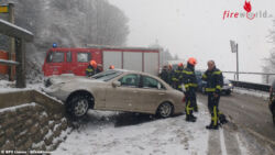 Durch einen Pkw-Unfall – ein Mercedes kam ins Schleudern, von der Straße ab und prallte gegen eine Hangbebauung, auf der er stecken blieb – kam hier der Verkehr zum Stillstand. Während die Feuerwehr Gröbming mittels Kran das Fahrzeug barg, schneite es wieder ein paar Zentimeter und die Lkw konnten nicht mehr anfahren. Ein Lastwagen musste von der Feuerwehr angeschleppt werden. Während der Berge- und Aufräumarbeiten war die Ennstalbundesstraße durch Polizei (bei Gröbming) und FF Pruggern (bei Pruggern) gesperrt.