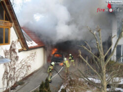 KLAGENFURT (KTN): In Klagenfurt ist am Morgen des 3. Februar 2017 ein Carport samt den darin abgestellten Pkw in Flammen aufgegangen. Auch die Fassade eines Wohnhauses wurde schwer in Mitleidenschaft gezogen, berichtet die Berufsfeuerwehr Klagenfurt.