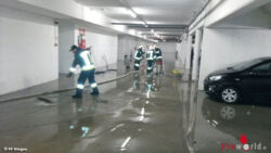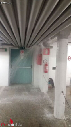 STEGEN (SÜDTIROL / ITALIEN): Am 03.02.2017 um 07:01 Uhr wurde die Feuerwehr Stegen zu einem Wasserschaden in die Althingstrasse alarmiert. Umgehend rückte die Wehr mit dem Kommando-, Schweren Rüst- und Transportfahrzeug aus. In einer Tiefgarage eines Kondominiums war eine Hydrantenleitung geborsten und hat 2/3 der Tiefgarage Knöcheltief unter Wasser gesetzt.
