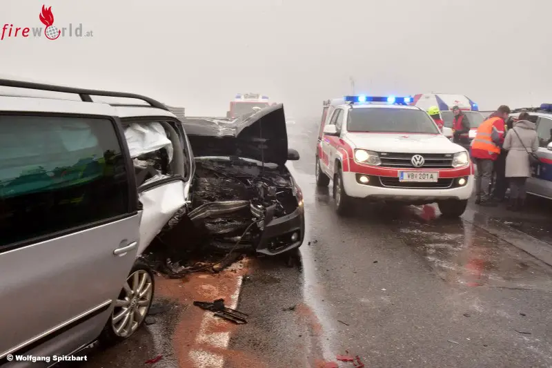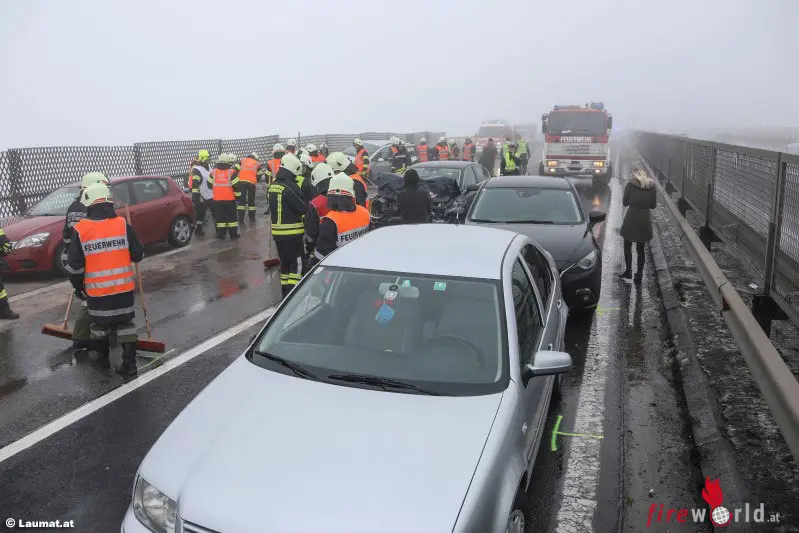 Der Unfall ereignete sich auf der Aurachtalbrücke unmittelbar an der Gemeindegrenze zwischen Regau (Bezirk Vöcklabruck) und Ohlsdorf (Bezirk Gmunden) Insgesamt kollidierten laut ersten Informationen acht Fahrzeuge, zehn Personen wurden laut Rotem Kreuz verletzt, zwei davon mittelschwer. Zwei Feuerwehren, die Autobahnmeisterei und mehrere Abschleppunternehmen standen im Einsatz, um die Autobahn vom Blechsalat zu befreien. Die Verletzten wurden nach der Erstversorgung durch Rettungsdienst und Notarzt ins Krankenhaus eingeliefert.