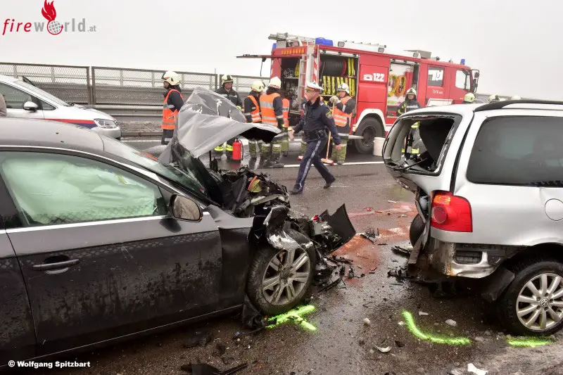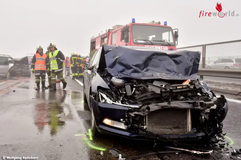 Oö: Serienunfall mit acht Fahrzeugen und zehn Verletzten auf der Westautobahn bei Regau