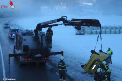 Eine Lenkerin geriet mit ihrem Pkw ins Schleudern und blieb nach einem Überschlag in der angrenzenden Wiese liegen. Zum Glück war sie, entgegen ersten Meldungen, nicht in ihrem Fahrzeug eingeklemmt. Somit konnte mit der Pkw-Bergung und der Beseitigung von ausgeflossenen Betriebsmitteln begonnen werden. Die verletzte Insassin wurde vom Roten Kreuz versorgt und ins Krankenhaus gebracht.