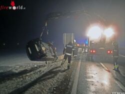 Mittels des Kranes des schweren Rüstfahrzeuges wurde das Fahrzeug wieder auf die Fahrbahn gehoben und anschließend auf einen sich in der Nähe befindlichen Parkplatz abgestellt. Anschließend konnte der Einsatz wieder beendet werden.