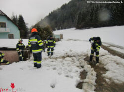 ST. STEFAN OB LEOBEN (STMK): Die Freiwillige Feuerwehr St. Stefan ob Leoben und die Feuerwache Lobming wurden am 06.02.2017 gegen 13:00 Uhr zu einer Überflutung in die Vorlobming alarmiert. Bedingt durch die teilweise starken Regenfälle und die Schneeschmelze kam es lokal zu einer Wasseranhäufung, die in die anliegenden Wohnhäuser bzw. Garagen einzutreten drohte.