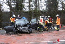 Deutschland: Zwei Einsätze gleichzeitig → Frau bei Unfall in Pkw eingeklemmt und Kabelbrand in einem Keller