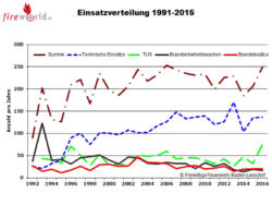 Zum Glück blieb die Zahl der tatsächlichen Brandeinsätze mit 20 Einsätzen weiter auf einem tiefen Niveau. Auch die technischen Einsätze sind 2016 mit 137 Einsätzen auf den Schnitt des letzten Jahrzehnts geblieben. Eine Steigerung der Einsatzzahlen um mehr als das doppelte ist bei automatischen Brandmelde-Anlagen (TUS-Anlagen) zu verzeichnen, welche immer öfter vorgeschrieben werden.